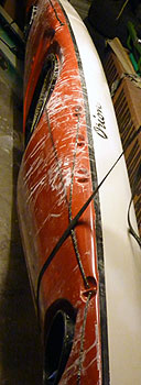 Al schurend moest ik mezelf wel vaak tot de orde roepen om alleen de opgevulde kraken te schuren en niet om ook alle krassen eruit te schuren. Het is per slot van rekening een tweedehands kajak met al een hele staat van dienst. Die hoeft er niet als nieuw uit te zien. Al hoewel ik we wel naar streefde de reparatieplekken onzichtbaar te maken.